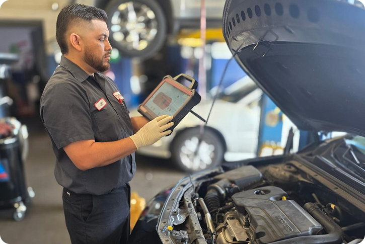 Previene fallas mayores. Realizamos un diagnóstico completo de frenos, llantas, fluidos, filtros y aire acondicionado para mantener tu auto en óptimas condiciones.